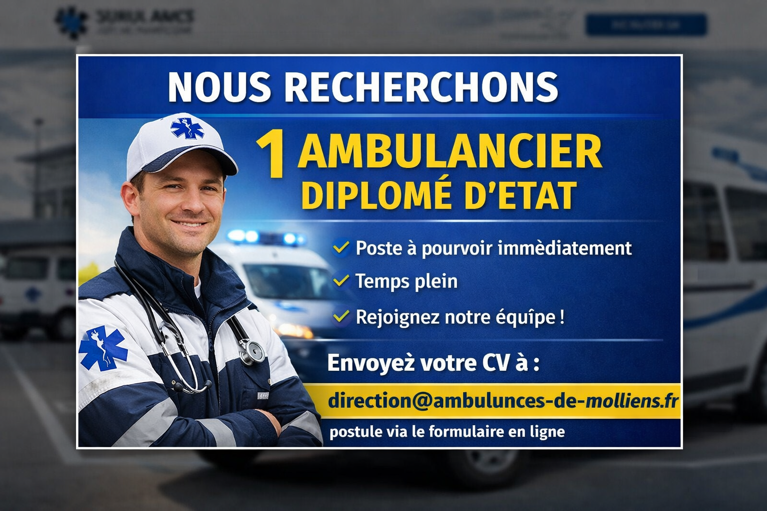 Les Ambulances de Molliens Dreuil sont agrées par l’Agence Régionale de la Santé des Hauts de France comme terrain de stage Européen.